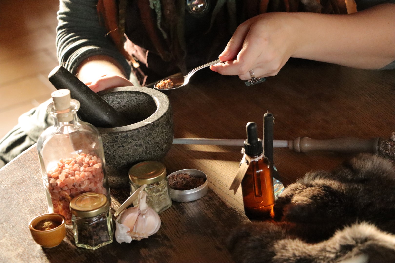 Magical Triangle biedt vele theorielessen, maar vindt het ook belangrijk om de spanningsboog af en toe om te gooien en een praktijkles aan te bieden. Dit in de vorm van het samenvoegen van ingrediënten en iets nieuws creëren, met meestal een magische insteek. Je krijgt samen met de andere leerlingen de ruimte, tijd en begeleiding om iets voor jezelf te maken, dat je ook kan meenemen. Of je dit item tijdens deze week gebruikt of bewaart voor later, is aan jou.